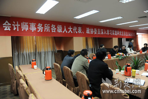 11月14日下午,省注冊(cè)會(huì)計(jì)師行業(yè)黨委在武昌財(cái)苑大廈召開了全省注冊(cè)會(huì)計(jì)師行業(yè)各級(jí)人大代表、政協(xié)委員深入學(xué)習(xí)實(shí)踐科學(xué)發(fā)展觀活動(dòng)座談會(huì)。來(lái)自全省各地的16位各級(jí)人大代表、政協(xié)委員齊聚一堂,為深入學(xué)習(xí)實(shí)踐科學(xué)發(fā)展觀活動(dòng)建言獻(xiàn)策,回顧二十年來(lái)注冊(cè)會(huì)計(jì)師行業(yè)黨建工作的發(fā)展歷程,展望會(huì)計(jì)師事務(wù)所行業(yè)的美好未來(lái)。