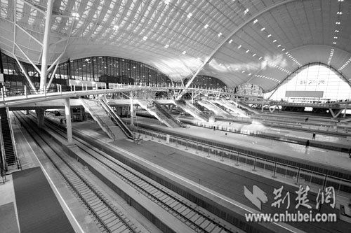 荊楚網(wǎng)消息 (楚天金報記者譚新杰 通訊員吳志華) 日前,武廣客專北端的起點站——武漢火車站已正式“掛牌”。自從2006年9月開工以來,這座飄逸的“鋼鐵巨鵬”,便淹沒在鏗鏘的建設聲中,一般人也很難進入站內(nèi)一看究竟,只能遠遠地看著它的雙翼逐漸成形,雄風漸展。這種結(jié)構(gòu)用鋼量超過鳥巢的偉大建筑,也被蒙上了一層神秘的面紗。