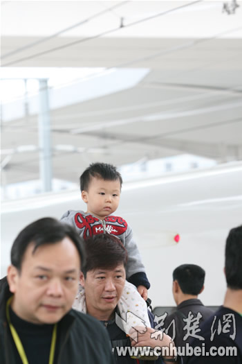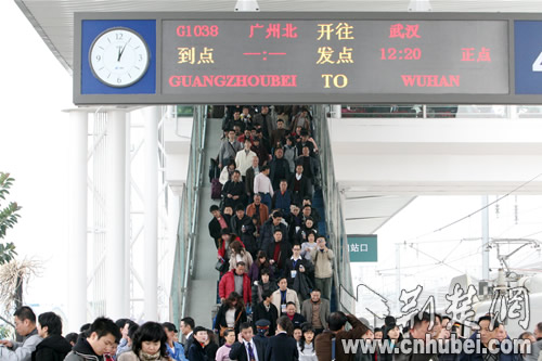 中午11時46分,列車?繌V州北站,歷時僅2小時46分鐘。在站臺上,記者遇到了一位帶著小孩的江西九江乘客,她興奮告訴記者,“我是慕名專程到武漢坐高鐵快車到廣州探親的,沒想到不到3個小時就到了,簡直不敢想。”
