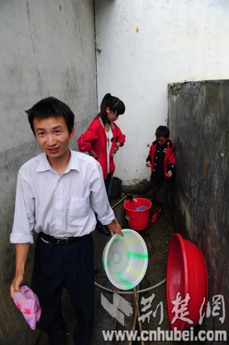 水,過去一直是困擾支教生的大問題。在大石,吃水全靠山上滲下的雨水,一到干旱,就面臨著斷水的威脅,尤其是冬天夜里上凍,支教生常常是晚上批完作業(yè)、備完課,然后去挑水。